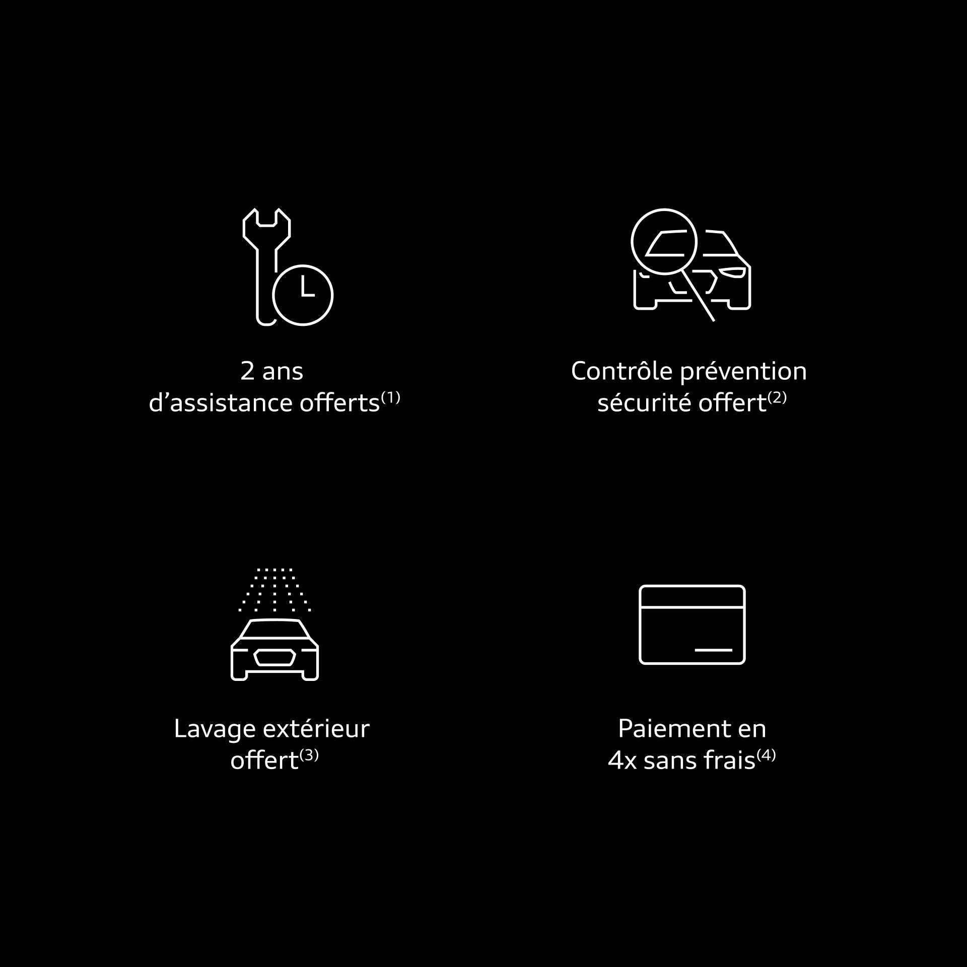 (4) Facilités de paiement pour tout achat d'un Service Entretien de min. 150 € TTC, conditions auprès de votre Partenaire Audi Service.