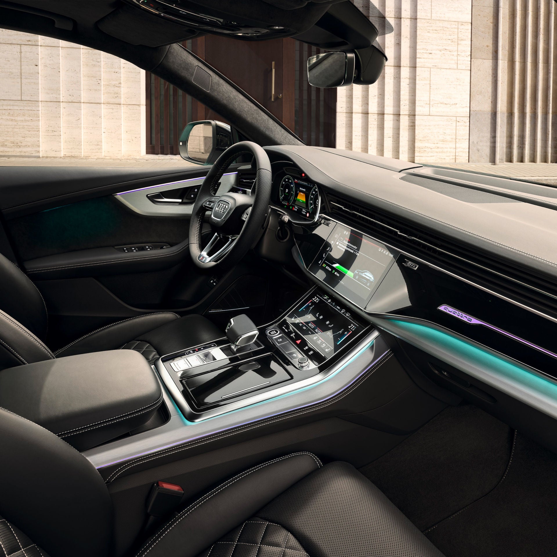 les inserts décoratifs en carbone Vecteur subliment l’intérieur de l’Audi S8. Des contours à l’aspect aluminium complètent cette allure fascinante.